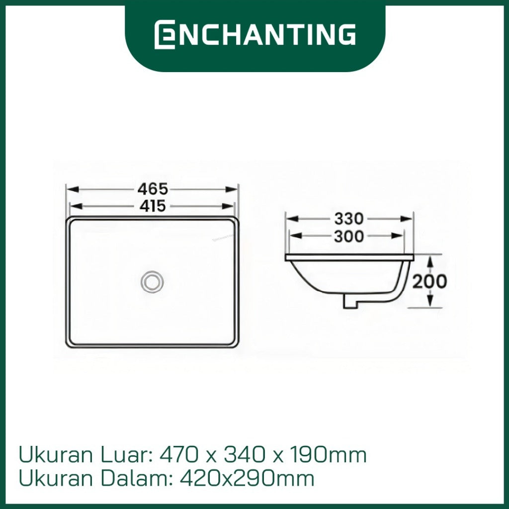 ENCHANTING Wastafel Tanam Meja UnderMount Washtafel Kamar Mandi Cuci Tangan under mount Putih Modern Minimalis Material Keramik Europe Enchanting E1358