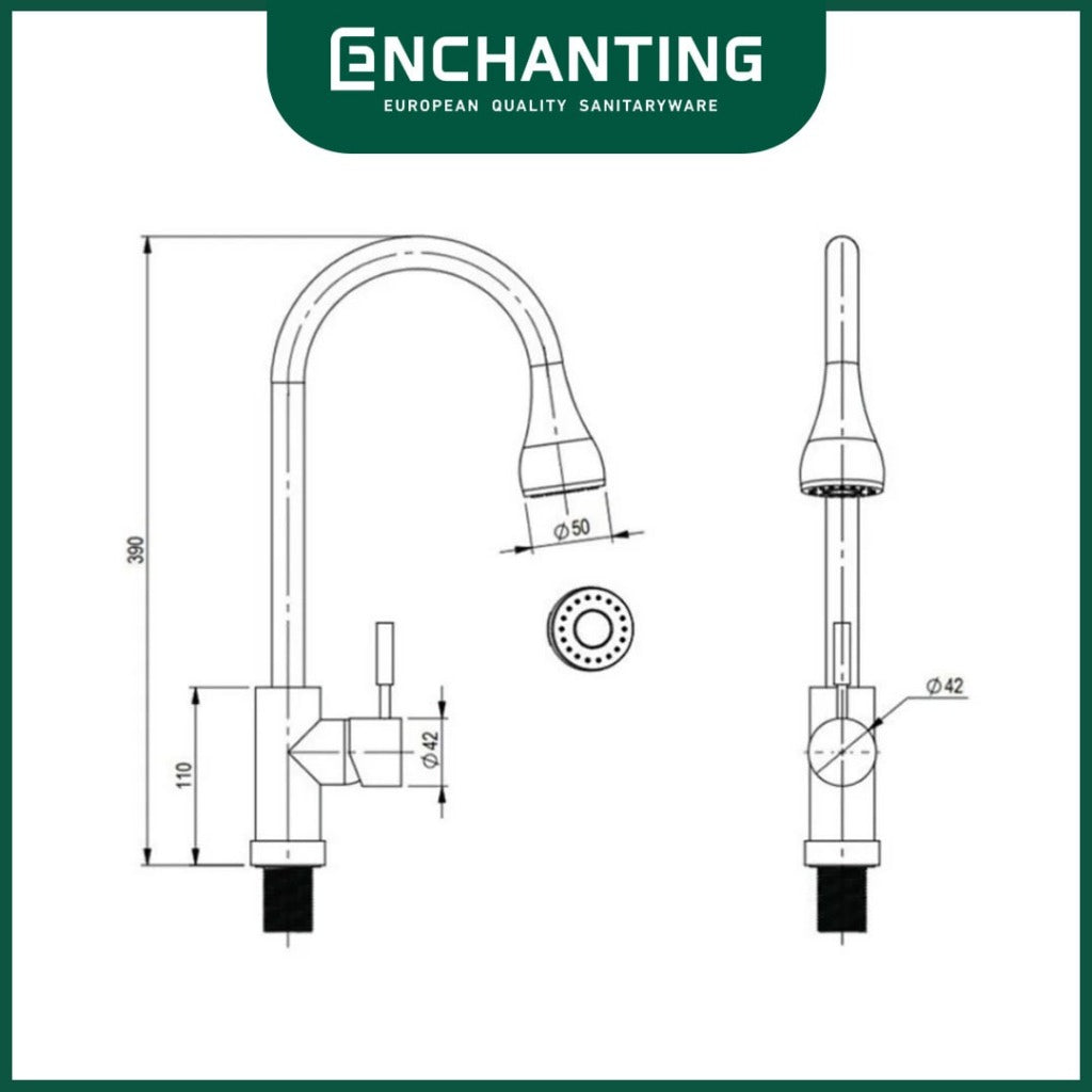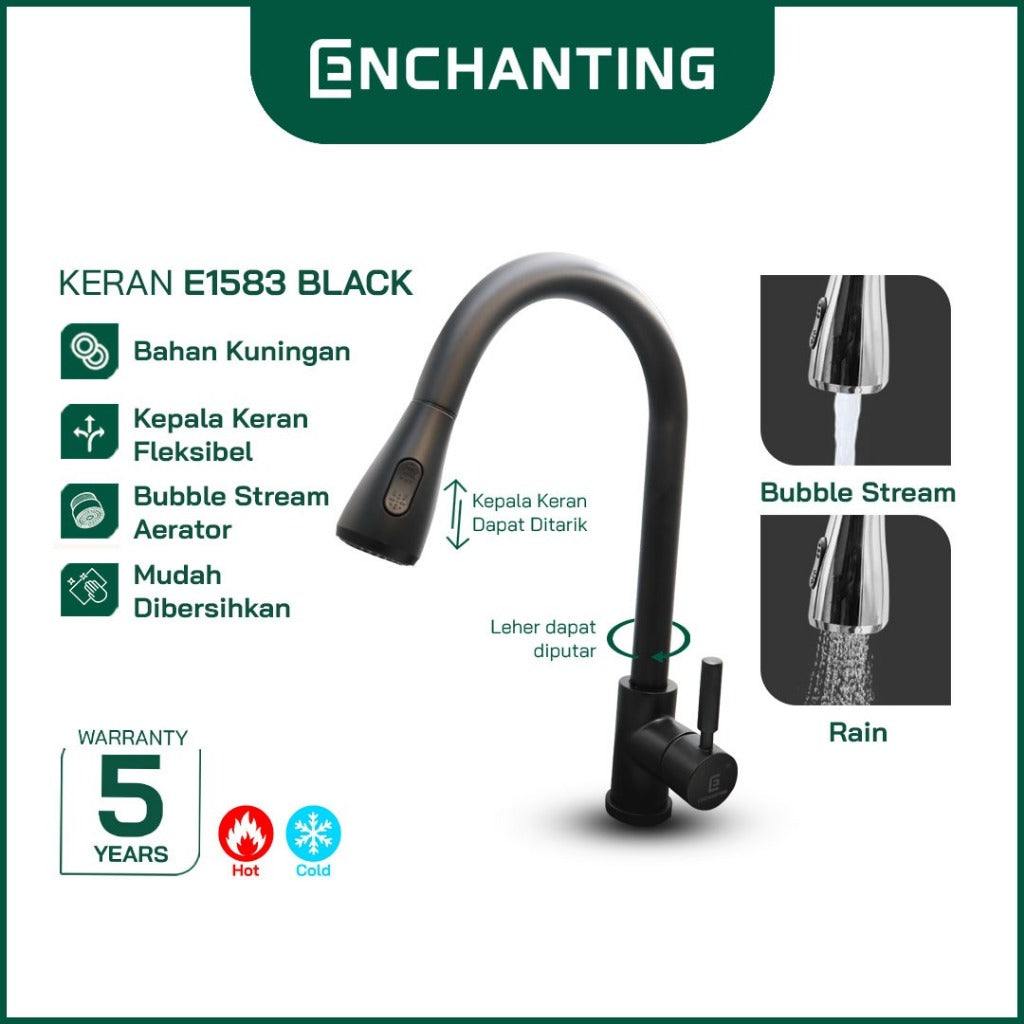 - Kepala dapat ditarik dan dirotasi, lebih fleksibel dari keran air biasa