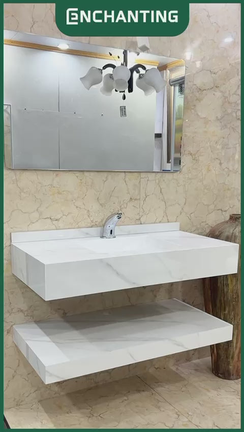 Cabinet wastafel Enchanting menyediakan wastafel dengan kabinet dan laci untuk menyimpan barang-barang peralatan mandi.